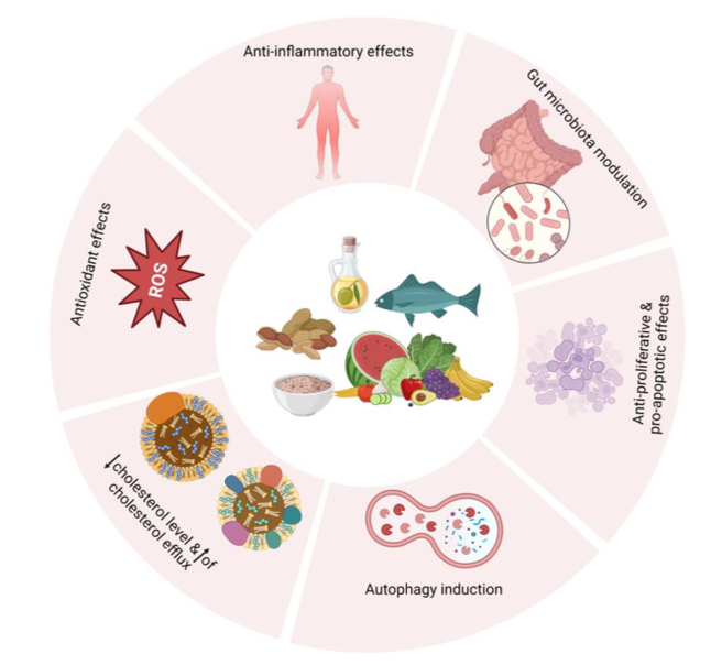Figura 1. Mecanismos potenciais de proteção da Dieta Mediterrânea no câncer de mama.